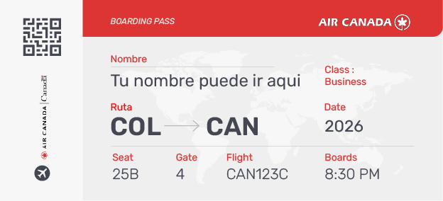 El Premio para el primer lugar consistirá en un (1) tiquete ida y vuelta, en la ruta Bogotá - Canadá – Bogotá, en la temporada disponible para vuelos directos desde Bogotá, en clase económica, viajando en vuelos directos de Air Canada vía Toronto y/o Montreal. ÚNICAMENTE aplica para las rutas operadas por Air Canada.